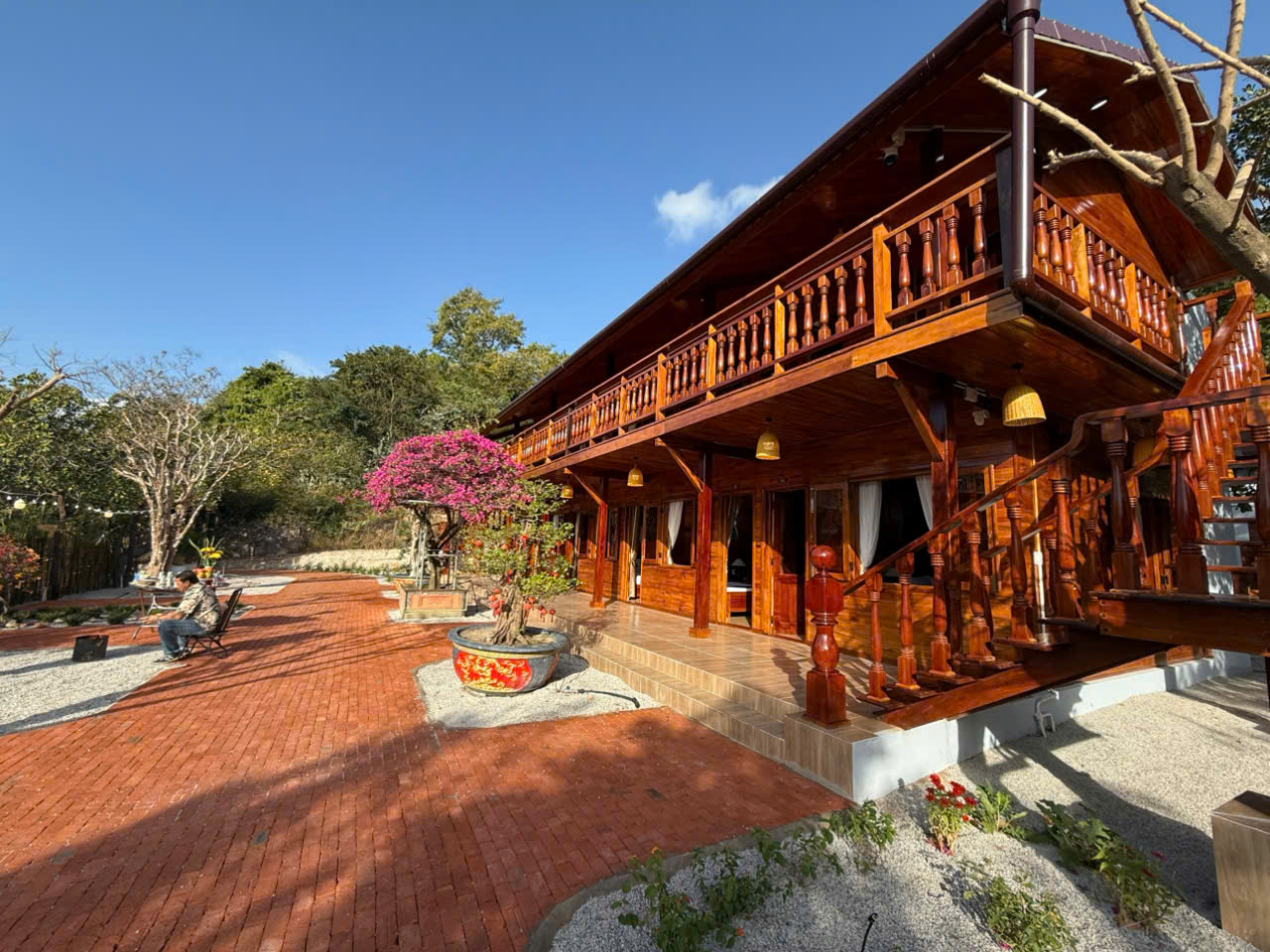Đối với gia đình đông người hoặc nhóm bạn đi du lịch cùng nhau, lựa chọn homestay nguyên căn sẽ mang lại không gian riêng tư và sự thoải mái tối đa. Homestay nguyên căn tại Nhà Gỗ & Coffee Làng Xưa có khu vườn và khu BBQ riêng, phù hợp cho các hoạt động sinh hoạt chung và nghỉ dưỡng dài ngày.